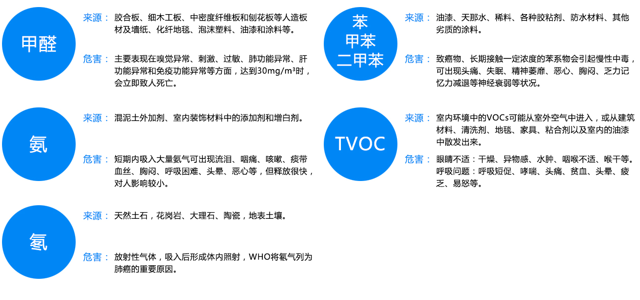 近年來有害于健康的裝修污染,已經引起全球性的人口發病和死亡率的增加。其原因是在新建和重建的建筑物選用的建材中含有害物質,并且嚴重超標,施工的質量差, 就會造成室內環境中的空氣污染。在人們日常工作和生活的環境中發生空氣有毒污染,輕則會使人體引起咽喉炎、胸悶、頭昏、視力下降、皮膚起皰等。重則會影響人 體的免疫系統、引起血液病及其他嚴重疾病,甚至致癌。