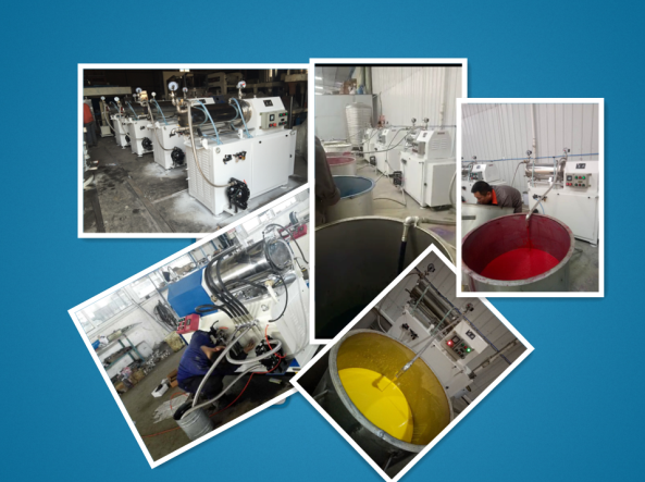 臥式密閉砂磨機(jī)是一種采用濕法研磨分散、筒體水平安裝、連續(xù)密閉生產(chǎn)的化工設(shè)備;型氣動雙隔膜泵(或齒輪泵)將經(jīng)過預(yù)分散、潤濕處理的固液相混合物料輸入筒體內(nèi),物料和筒體內(nèi)的研磨介質(zhì)一起被高速旋轉(zhuǎn)的分散器組所攪動,使物料中的固體顆粒和研磨介質(zhì)間產(chǎn)生強(qiáng)烈的碰撞、剪切,在短時間內(nèi)達(dá)到物料顆粒的磨細(xì)和分散聚集體的目的。研磨分散物料效果是生產(chǎn)油漆、油墨、染料等產(chǎn)品的設(shè)備