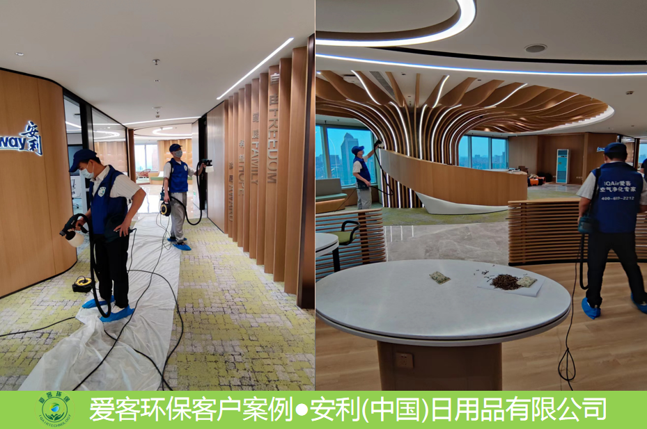本次光催化空氣治理覆蓋了所有公共辦公區、茶水間、會議室、母嬰室及辦公室。愛客環保團隊,上下聯動,采用精準深度治理方法,圓滿完成了本次室內空氣凈化任務。最后,安利(中國)總部經過全方位的治理后,室內空氣有明顯改善,達到國家空氣規定標準。