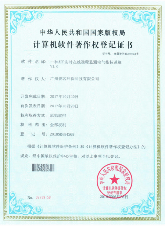 APP遠(yuǎn)程檢測空氣指標(biāo)軟著證書
